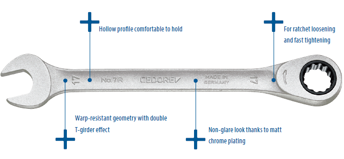 - Non-glare look thanks to matt chrome-plating, locking insert and pawl manganese- phosphated.